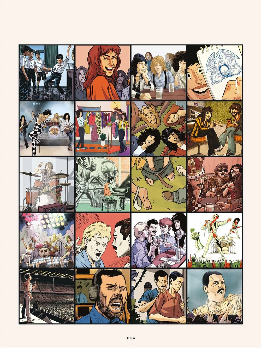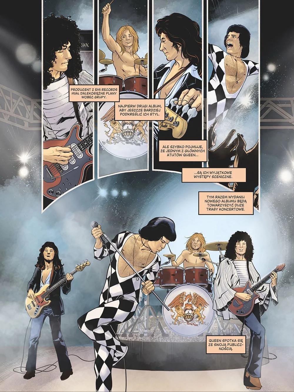 Queen to wszystko, co powyższe, i wiele więcej. Dzięki temu komiksowi dokumentalnemu odkryjecie historię zespołu pioniera współczesnego teledysku; grupy potrafiącej ekstrawagancko przeplatać rock, jazz, heavy metal i operę!