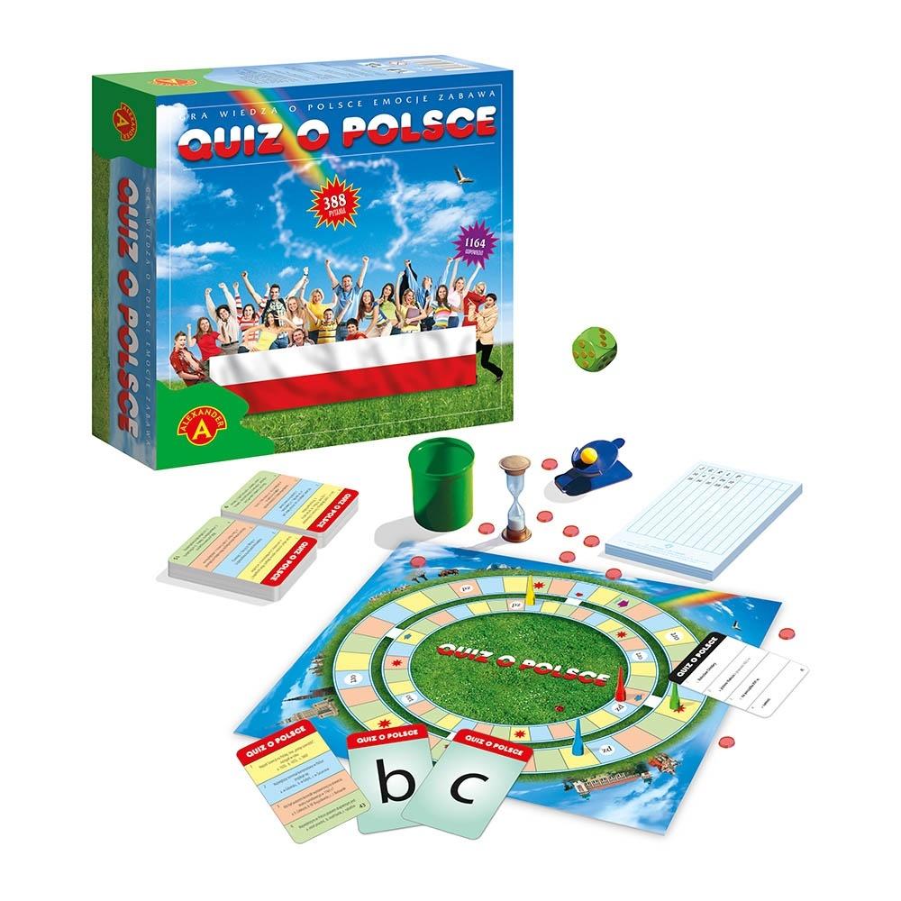 Quiz o Polsce"" to gra i emocjonująca zabawa, w której można sprawdzić i wzbogacić swą wiedzę na temat polskiej historii, geografii, kultury i przyrody. Podstawowe zadanie graczy - to wskazanie właściwej odpowiedzi na wybrane losowe pytanie. Dodatkowym urozmaiceniem są zadania sprawdzające znajomość ortografii, umiejętność wymowy trudnych polskich zdań i próba zręczności.
