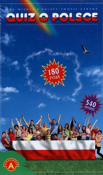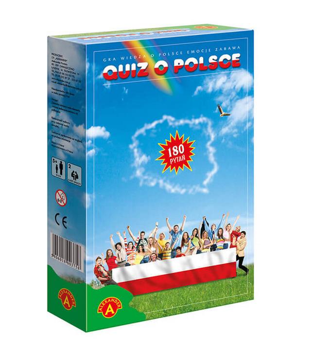 Quiz o Polsce"" jest doskonałą i emocjonującą zabawą, sprawdzającą i wzbogacającą wiedzę na temat polskiej historii, geografii, kultury i przyrody. Dodatkowym urozmaiceniem jest sprawdzanie znajomości polskiej ortografii oraz wymowy trudnych polskich zdań.Gra dla 2-3 graczy w wieku od 10 lat.