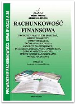 RACHUNKOWOŚĆ FINANSOWA. CZĘSC III. PRODUKTY PRACY I ICH SPRZEDAŻ, OBRÓT TOWAROWY, INWENTARYZACJA, ŹRÓDŁA FINANSOWANIA ZASOBÓW MAJĄTKOWYCH, POZOSTAŁA DZIAŁALNOŚĆ OPERACYJNA, DZIAŁALNOŚĆ FINANSOWA, STRATY I ZYSKI NADZWYCZAJNE, WYNIK FINANSOWY KWALIFIKACJA A.36 W podręczniku ,,Rachunkowość finansowa. Część III omówiono ewidencję obrotu produktami pracy, towarami w jednostkach handlu hurtowego i detalicznego oraz cel, metody przeprowadzania inwentaryzacji, ewidencję rozliczenia ujawnionych różnic inwentaryzacyjnych wraz z dokumentacją inwentaryzacji. Publikacja zawiera charakterystykę i ewidencję źródeł finansowania zasobów majątkowych, pozostałych przychodów i kosztów operacyjnych, przychodów i kosztów finansowych, strat i zysków nadzwyczajnych oraz rozliczeń międzyokresowych przychodów. Scharakteryzowano w niej wynik finansowy, omówiono metody jego ustalania. Przedstawiono zasady ustalania kwoty podatku dochodowego, zmiany stanu produktów oraz rozliczania wyniku finansowego. Opracowanie zawiera cztery testy samodzielnej kontroli podsumowujące omówiony materiał.Ponadto zamieszczono w podręczniku wykaz kont księgi głównej utworzony na potrzeby szkolne, który jest wykorzystywany do dekretacji dowodów księgowych.Kolejność rozdziałów w logicznym porządku ujmuje część materiału do nauczania w zawodach technik ekonomista i technik rachunkowości dla kształcenia w zakresie kwalifikacji A.36 (Prowadzenie rachunkowości),Publikacja opracowana zgodnie z nową podstawą programową dla zawodu technik ekonomista dla kształcenia w zakresie kwalifikacji A.36 (Prowadzenie rachunkowości). Stanowi materiał pomocniczy, wspomagający edukację, niepodlegający procedurze dopuszczenia do użytku szkolnego przez Ministra Edukacji Narodowej.