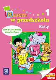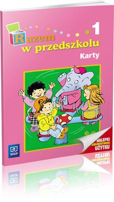 Cykl Razem w przedszkolu obejmuje książki dla Pierwszego Etapu Edukacyjnego, stanowiącego przedpole dalszej, systematycznej edukacji szkolnej. Treść książek wspiera szeroko pojęty proces rozwijania dziecka w różnych sferach, łącznie z elementami dotyczącymi początkowej nauki czytania, pisania i treści matematycznych.Przygotowana propozycja odciąży nauczycielki przedszkola od żmudnego przygotowywania indywidualnych pomocy dla dzieci i usprawni ich pracę wychowawczo - dydaktyczną.Różnorodność propozycji edukacyjnych, zawarta w pakiecie Razem w przedszkolu rozwija wszystkie procesy poznawcze i służy dobremu przygotowaniu dzieci do realizacji zadań czekających na nie w szkole.Pakiet składa sięz pięciu woluminów zatytułowanych Karty i Wyprawka.Karty są skorelowane z Wyprawką i stanowią uzupełniającą się wzajemnie całość.Karty pracy. Cz.1. i Wyprawka. Cz.1. obejmują dwa miesiące zajęć - wrzesień i październik.Ikolejno części 2. - listopad, grudzień, części 3. - styczeń, luty, części 4. - marzec, kwiecień,Części 5 - maj, czerwiec.Materiał ćwiczeniowy zawarty w Kartach Cz.1. realizuje tematy:Mam pięć lat, poznaję kolegów i moje najbliższe otoczenie,Wakacje już za nami,Moja rodzina jest radosna,Jesień daje nam owoce i warzywa,Poznaje z tatą zasady ruchu drogowego i zapoznaje z literami drukowanymi A, M, O, T (oswojenie z obrazem litery), cyframi i liczbami od 1 do 4.Występują ćwiczenia rozwijające słuch językowy dziecka, wyrazy do globalnego czytania, ćwiczenia z wykorzystaniem nalepek wielokrotnego użytku, zadania służące rozwijaniu gotowości do pisania, między innymi sprawności dłoni w rysowaniu różnych linii oraz różnorodne zadania rozwijające dziecko w sposób wszechstronny. Obok eksponowania liter i cyfr, pojawiają się zadania zmierzające do zapamiętania ich nazwy i kształtu. Jest to zapoznanie i oswojenie z obrazem litery, a nie wprowadzanie litery do obowiązkowego opanowania. Działania te obejmują taki stopień trudności, aby każde dziecko mogło je wykonać i tym samym osiągnęło sukces, będący zachętą do dalszej pracy.