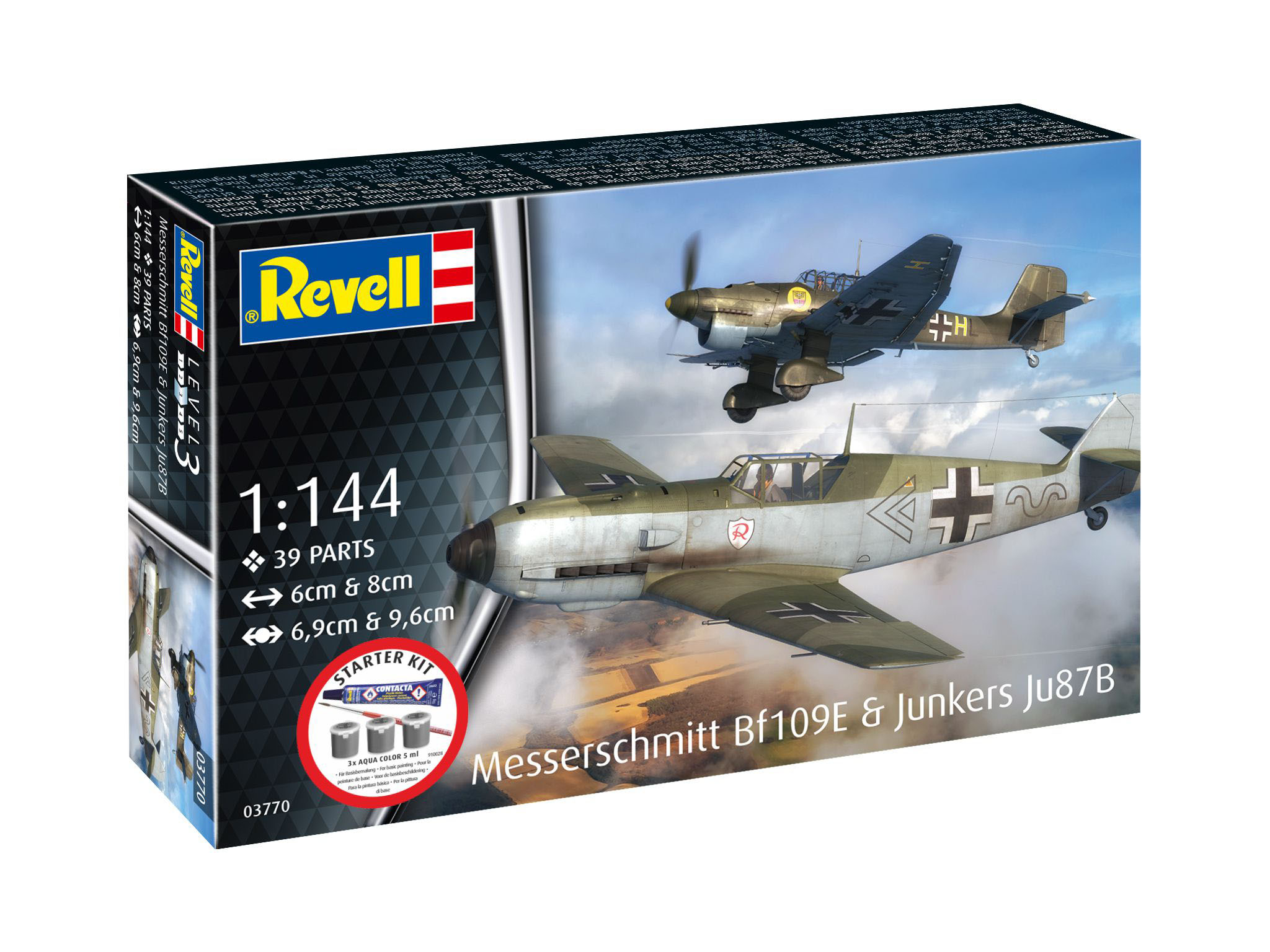 Zestaw samolotów Messerschmitt Bf 109E i Junkers Ju 87B Stuka w skali 1:144 - doskonała propozycja dla pasjonatów historii i podniebnych bitew!