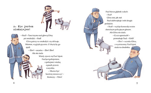 "Członkowie Rodziny Obrabków bardzo lubią zabierać cudze rzeczy. Po prostu nie potrafią się powstrzymać. W każdym razie tata Zbiro, mama Cela i Elka. Za to Ture lubi robić tylko to, co dozwolone, i nie bierze niczego bez płacenia. Rodzice i siostra trochę się o niego martwią. Co z tego chłopaka wyrośnie? W mieście pojawił się nowy policjant. Ma na imię Klas i nie jest ani trochę taki miły jak Paul Icjant. Klas jest podejrzliwy wobec każdego, kto nosi pasiastą koszulkę i złodziejską maskę. Zwłaszcza wobec Turego. Ponadto Klas bardzo się interesuje psem Rodziny Obrabków. Każe Turemu przedstawić paragon za zakup Gliny i grozi, że psy bez dowodu zakupu będą wysłane na biegun północny. Turego ogarnia przerażenie. Przecież w jego rodzinie niczego nie kupuje się za pieniądze! Jak uratować Glinę? Trzecia część nowej Zakamarkowej serii dla początkujących czytelników oraz do głośnego czytania. W tym tomie między innymi: gadajce psy, ucieczka do ciupy, wpadka Elki, wredny policjant, przesłuchanie na komisariacie, wielofunkcyjny kostium, Bruno z Francji, psie smakołyki i drastyczne metody. Gwarantujemy dużo śmiechu! Do końca 2022 roku ukazały się: „Rodzina Obrabków i urodzinowy skok”, „Rodzina Obrabków i złoty diament”, „Rodzina Obrabków i psia sprawa”. Kolejne tomy w przygotowaniu."