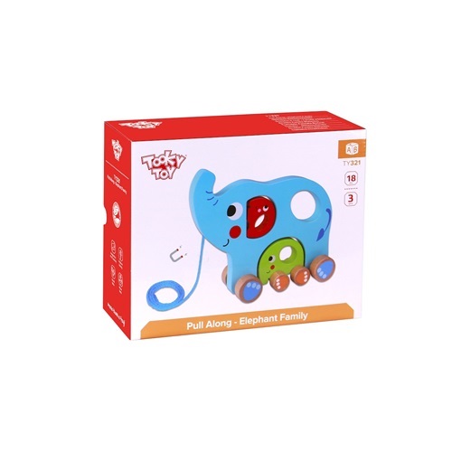 Wszystkie 3 zabawki mają delikatny magnes, dzięki któremu podczas przemieszczania zielony słonik jest przyczepiony z tyłu dużego, a najmniejszy może podróżować na jego grzbiecie.