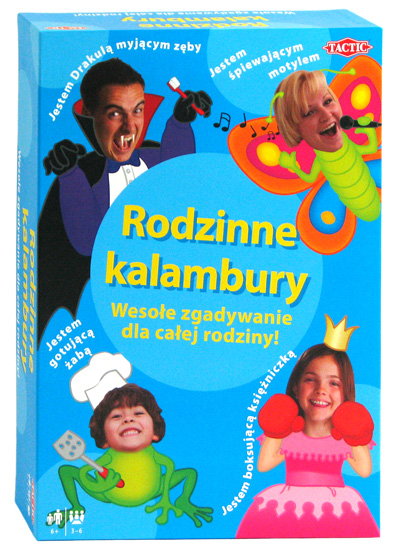 DUŻO ZABAWY I ŚMIECHU DLA WSZYSTKICH W RODZINIE! Przedstawianie żaby gotującej obiad, krokodyla myjącego zęby Rzut kostkami decyduje o tym, co będziesz przedstawiał. W trakcie twojego występu inni będą próbowali zgadnąć, jaką postać i czynność naśladujesz. Jeśli komuś się to uda, to obydwoje przesuniecie swoje pionki na planszy. Zawartość pudełka: Plansza, ruletka (tarcza ze strzałką), 100 kart, 2 kostki, arkusz z naklejkami, 6 pionków, klepsydra, instrukcja. Gra rodzinna dla 3 do 6 graczy w wieku 6+.