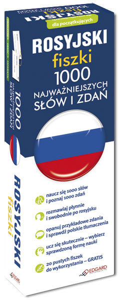 Opanuj 1000 najczęściej używanych słów! Poznaj ich użycie w 1000 przykładowych zdaniach!Dzięki nauce z fiszkami:- poznasz 1000 najważniejszych słów i 1000 zdań, dzięki którym zaczniesz swobodnie rozmawiać,- utrwalisz słówka i poznasz ich użycie w kontekście - przykładowe zdania,- szybko i skutecznie opanujesz słownictwo z aż 40 grup tematycznych,- ćwiczysz język o każdej porze i w dowolnym miejscu,- 20 pustych fiszek do uzupełnienia własnymi słówkami - GRATIS.Rosyjski fiszki 1000 najważniejszych słów wraz z 1000 przykładowych zdań to wyjątkowy zestaw tysiąca ponumerowanych, usztywnionych kartoników do nauki języka rosyjskiego. Nauka z kursem pozwala szybko i skutecznie opanować najczęściej używane w języku rosyjskim słówka. Opanowanie tego unikalnego zestawu umożliwia swobodną komunikację na poziomie podstawowym oraz czytanie ze zrozumieniem większości tekstów w języku rosyjskim. Przykłady użycia wszystkich słów w zdaniu to gotowe wzorce komunikacyjne. Kurs podzielono na 40 praktycznych grup tematycznych, aby ułatwić zapamiętanie materiału metodą skojarzeń. Dodatkowo 20 czystych fiszek pozwala na uzupełnienie zestawu o własne słowa. Specjalny dobór słówek, przykłady użycia w zdaniach i załączone pudełko tworzą unikalny zestaw do skutecznej nauki języka rosyjskiego.