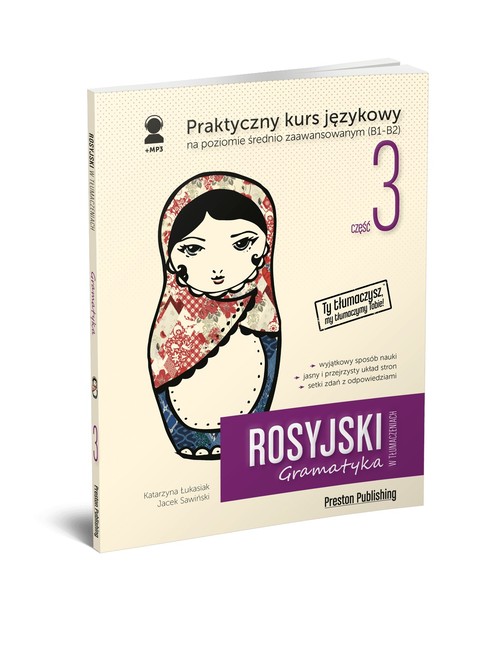 - czytelne wskazówki w języku polskim ułatwiające zrozumienie zasad gramatycznych języka rosyjskiego,