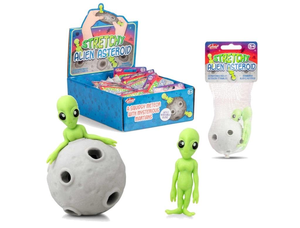 Zestaw zawiera rozciągliwy asteroid i para rozciągliwych kosmitów. Asteroid jest wypełniony dziurami w które można chować oraz wyciągać z nich nieziemskie istoty. Ten obcy duet to jeden z najlepszych na świecie bestsellerów - nie przegap okazji.
