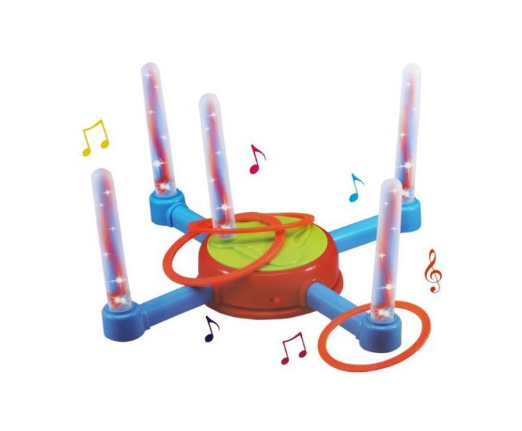 Zabawa jest o tyle ciekawa iż zabawka jest zasilana bateriami i po włączeniu jej cała platforma obraca się wokół własnej osi, migając kolorowo światełkami i wesoło grając muzyką.