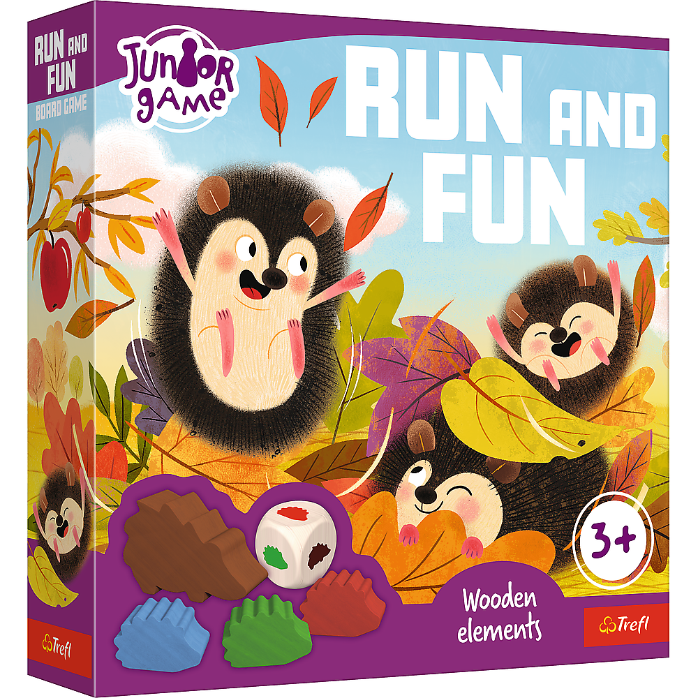 "Run and Fun" to wesoła gra planszowa z drewnianymi elementami i pięknymi ilustracjami dla dzieci już od 3 roku życia.
