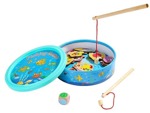 Zabawka zawiera 18 różnych rybek, dwie wędki oraz kostkę. Dodatkowo, gra jest idealną zabawą do nauki języka angielskiego.