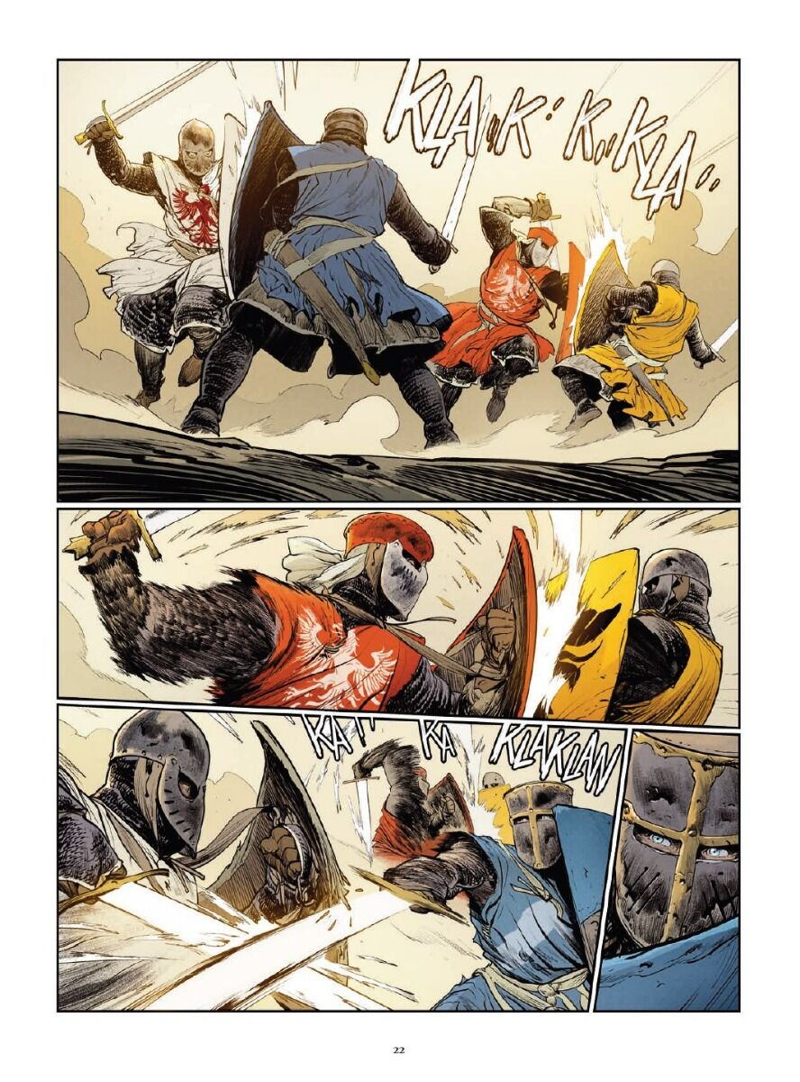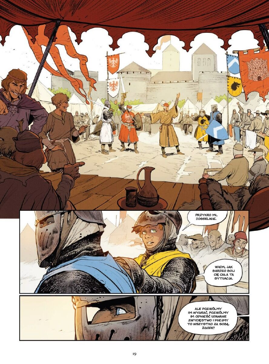 Znani z „Republiki czaszki” i „Króla rozpustników” Vincent Brugeas oraz Ronan Toulhoat, a także towarzyszący im Yoann Guillo, zabierają nas do świata turniejów i rycerstwa. Stworzona ze swadą, ekscytująca wizja średniowiecza znajduje się na pograniczu mangowego gatunku shōnen i klasycznej historii przygodowej.