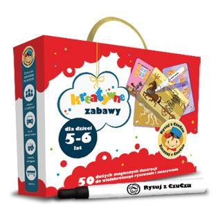 CzuCzu - bohater popularnych wśród dzieci i rodziców serii zgadywanek - w nowym wcieleniu! Wraz ze sztabem psychologów i pedagogów dziecięcych CzuCzu stworzył serię magicznych walizeczek ,,Rysuj z Czuczu"" dla dzieci w wieku 5-6 lat. Każde magiczne pudełeczko liczy 50 ilustracji na 25 specjalnych kartach, oraz flamaster i ściereczkę. Zadaniem dzieci jest malowanie na kartach zgodnie z poleceniami, a następnie zmazywanie i ponowne tworzenie. Każde z zadań da się rozwiązać w inny sposób, który wyznacza tylko i wyłącznie wyobraźnia i twórczość dziecka. Zabawa z ,,Rysuj z CzuCzu"" daje dziecku możliwość ćwiczenia umiejętności manualnych, koncentracji uwagi, spostrzegawczości, analizy i syntezy wzrokowej oraz kreatywności. Pobudza szeroką gamę funkcji psychomotorycznych i poznawczych dziecka. ,,Rysuj z CzuCzu"" zostało w całości wyprodukowane w Polsce!