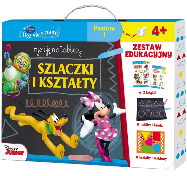 Zestaw edukacyjnyprzeznaczony dla dzieci rozpoczynających przygodę z pisaniem to okazja do nauki przez zabawę w towarzystwie ulubionych przez dzieci bohaterów ze świata Disneya.Dzięki kreatywnym narzędziom takim jak ścieralna tablica do pisania wraz z kredą, kartonowe szablony do rysowania kształtów i książki z naklejkami, Twoje dziecko w łatwy sposób nauczy się kreślić idealne linie, rozpoznawać kształty czy rysować szlaczki.Disney Ucz się z namito program edukacyjny stworzony przez ekspertów, aby pomóc dzieciom w wieku przedszkolnym i wczesnoszkolnym rozwinąć kluczowe dla nich umiejętności.