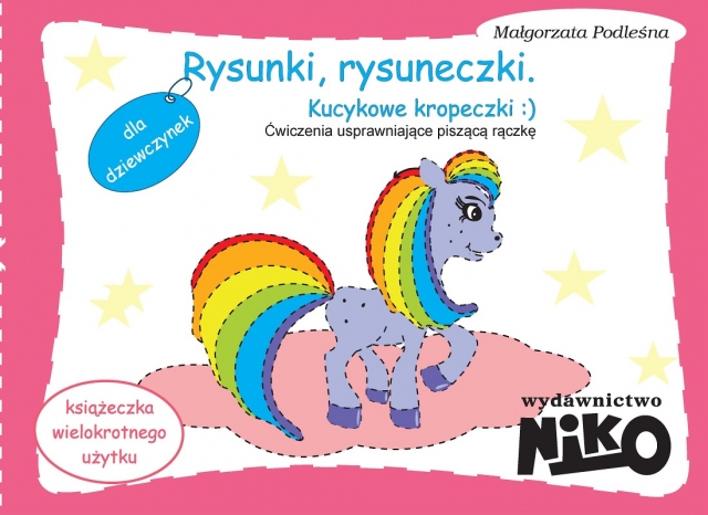 Stare powiedzenie, że zeszyt to wizytówka ucznia, jest bez wątpienia aktualne.Co zatem zrobić, żeby literki były kształtne, napisane starannie i mieściły się w liniaturze? Odpowiedź jest prosta - stosować ćwiczenia grafomotoryczne. Stanowią one wstęp do właściwego pisania. Dzięki nim dziecko usprawnia piszącą rękę i koordynację wzrokowo-ruchową, a także doskonale rozwija zdolność koncentracji. Podstawowym rodzajem takich ćwiczeń są szlaczki. Jednak rysowanie szlaczków może wydać się małemu dziecku formą mało atrakcyjną, a nawet nużącą. Rysowanie po śladzie będzie na pewno dużo ciekawsze. Tym bardziej, że dziecko może wykonywać pracę wielokrotnie, aż do uzyskania zadowalającego efektu. Poza tym maluch ma możliwość tworzenia własnych kompozycji poprzez dorysowanie w obrazkach brakujących elementów. Może tez przerysować gotowy wzór. Rysunki sa tak dobrane, aby były szczególnie atrakcyjne dla dziewczynek.Serdecznie polecamy