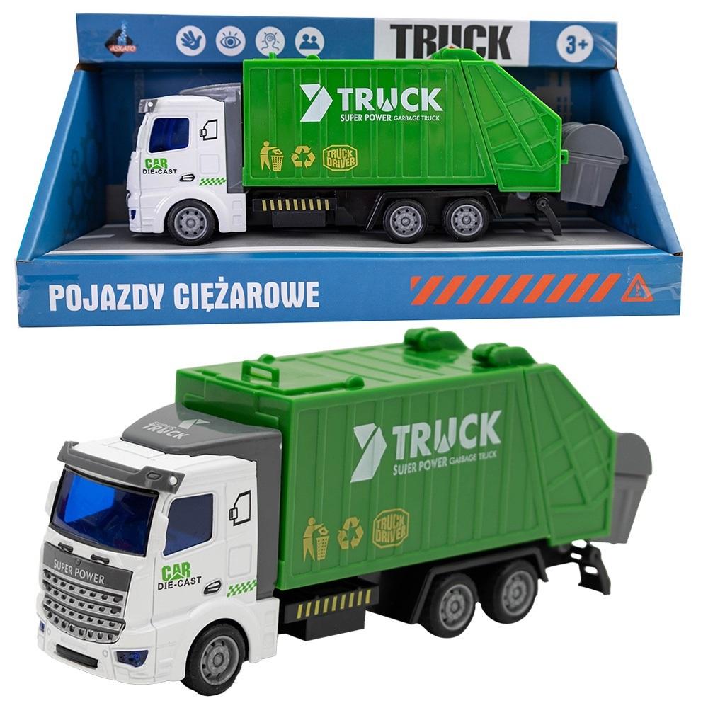 Śmieciarka metalowa kabina ciężarówki, pojazd 19x5.5x10 cm Wymiary opakowania: 26.5x11.5x12.5 cm Wiek:+3