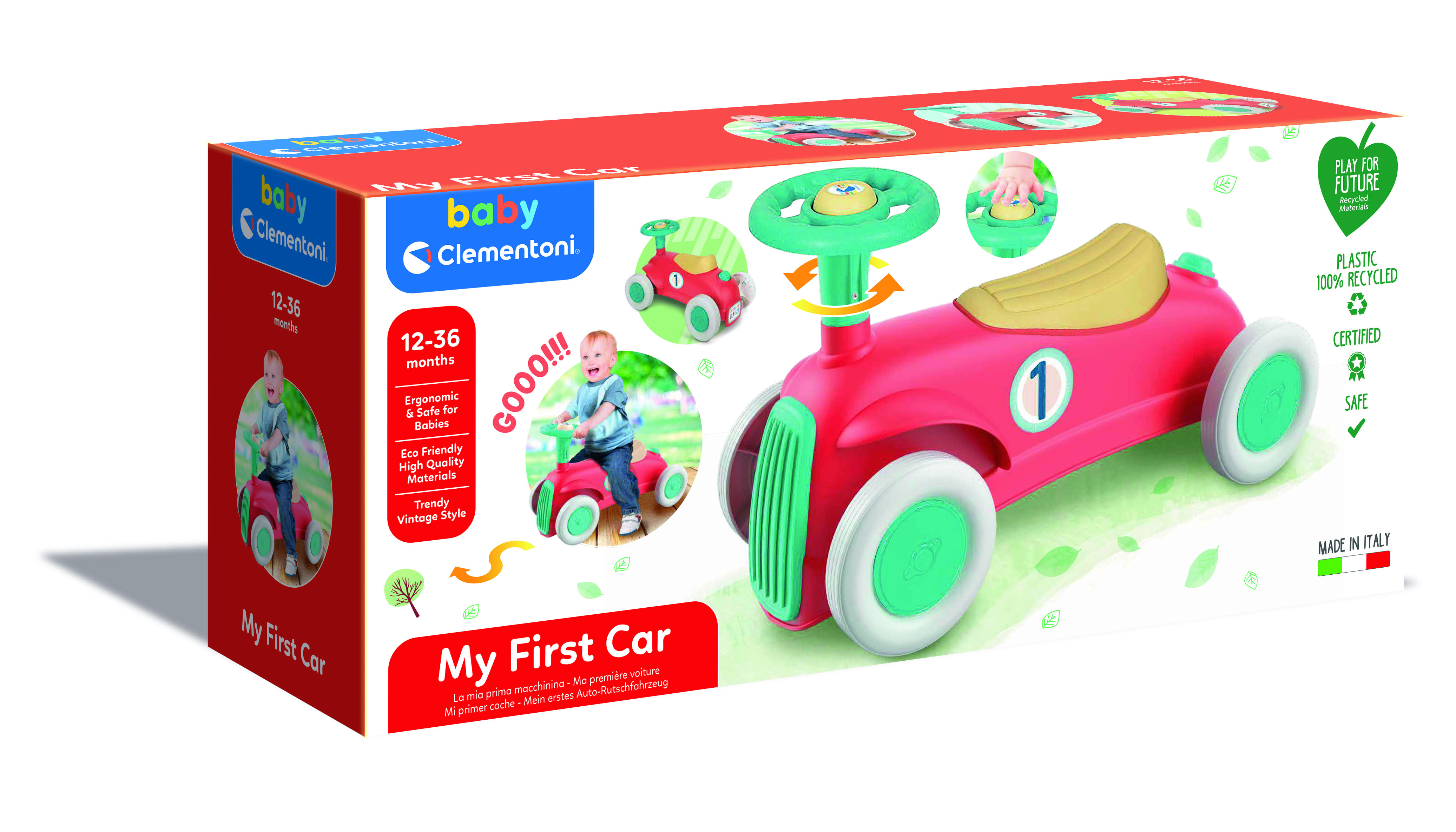 Zabawkowy samochodzik w 100% wykonany z materiałów uzyskanych z recyklingu. Wyrafinowane wzornictwo i styl vintage, aby wyruszyć naprzeciw nowym, fantastycznym przygodom. Sterowane koła ułatwiają prowadzenie, a piszczący klakson przyciąga uwagę dziecka i rozwija jego wyobraźnię, słuch i umiejętność rozumienia zależności przyczynowo-skutkowych. Samochód-jeździk zaprojektowany po to, aby rozwijać umiejętności motoryczne, koordynację i orientację przestrzenną dziecka. Produkt wyprodukowany w 100% we Włoszech