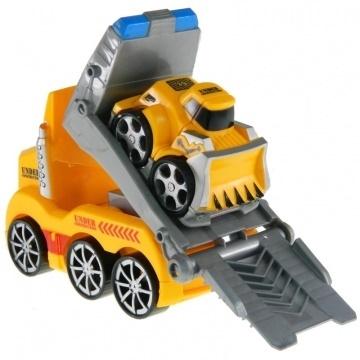 Zestaw dwóch pojazdów - lawety z napędem ciernym i mini spychacza.