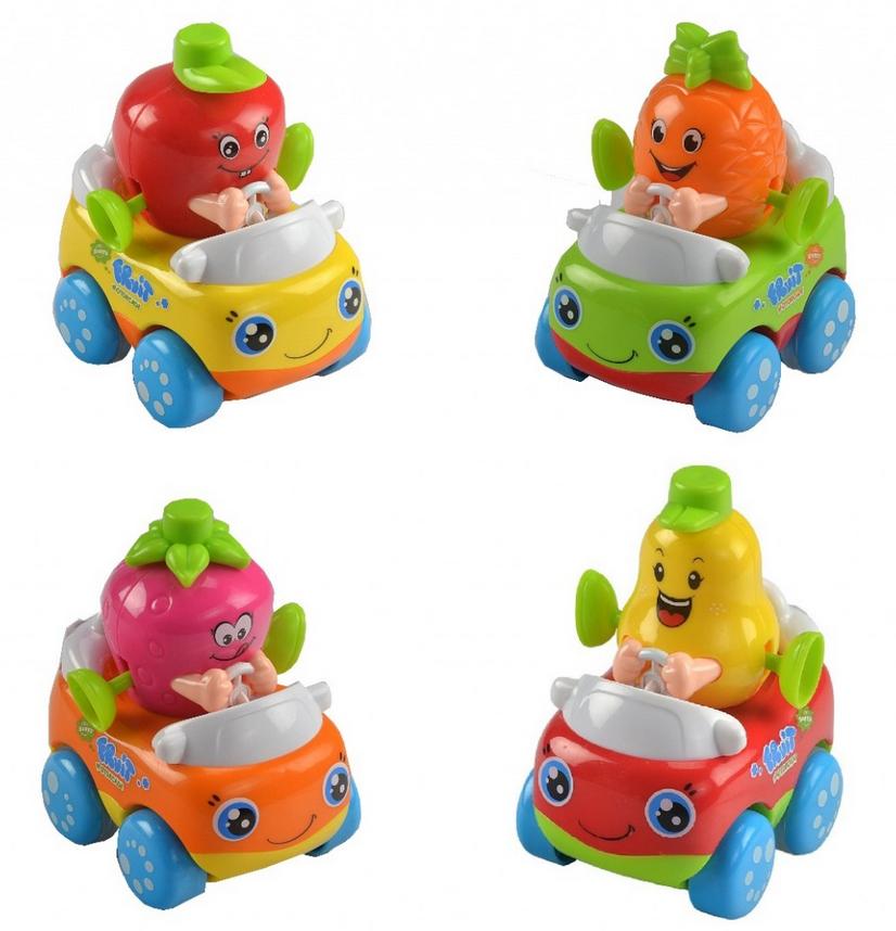 Samochodziki owoce różne rodzaje. Dostępne wzory: jabłko, malina, banan i pomarańcza. Cena za 1 sztukę. Towar wysyłany losowo.