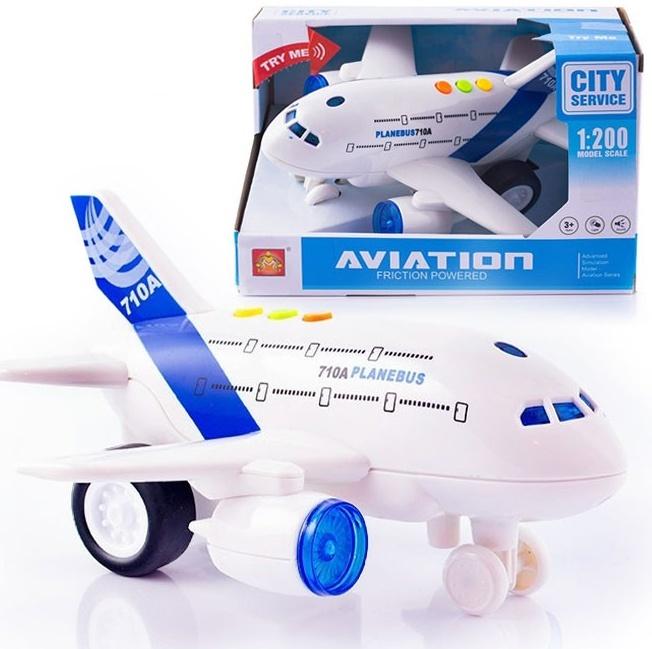 Samolot posiada 3 aktywujące przyciski, które włączają dźwięk i światła. Jednocześnie podświetlane są wnętrza kabiny pilotów oraz silniki umieszczone po bokach pojazdu, co sprawia, że zabawka jest bardzo atrakcyjna. Dzięki przyciskom na dachu maszyny, dziecko usłyszy komunikaty stewardesy w języku angielskim. Dodatkowo maluch usłyszy dźwięki pracującego silnika, co nadaje zabawce wyjątkowy efekt. Samolot ma również napęd typu friction, który umożliwia poruszanie się pojazdu po powierzchni poprzez rozpędzenie go. Dzięki swoim funkcjom i starannemu wykonaniu, zabawka doskonale odwzorowuje prawdziwy samolot. Solidne wykonanie zapewnia długą i fascynującą zabawę dla Twojego dziecka.