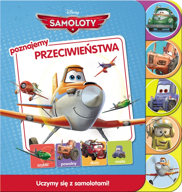 Poznajemy przeciwieństwa to książeczka twardostronicowa z registrami adresowana do najmłodszych dzieci. Bawiąc się z bohaterami filmu ,,Samoloty"" - robiąc wesołe i smutne minki, podskakując wysoko i schylając się nisko - maluchy nauczą się dostrzegać przeciwieństwa. Rozwiązując ciekawe i pomysłowe zadania ćwiczyć będą także spostrzegawczość. W towarzystwie sympatycznych bohaterów filmu ,,Samoloty"" zdobywanie nowych umiejętności to świetna zabawa!