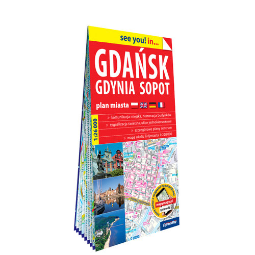• szczegółowe plany centrum Gdańska, Gdyni i Sopotu w skali 1:13 000 (1 cm – 130 m),