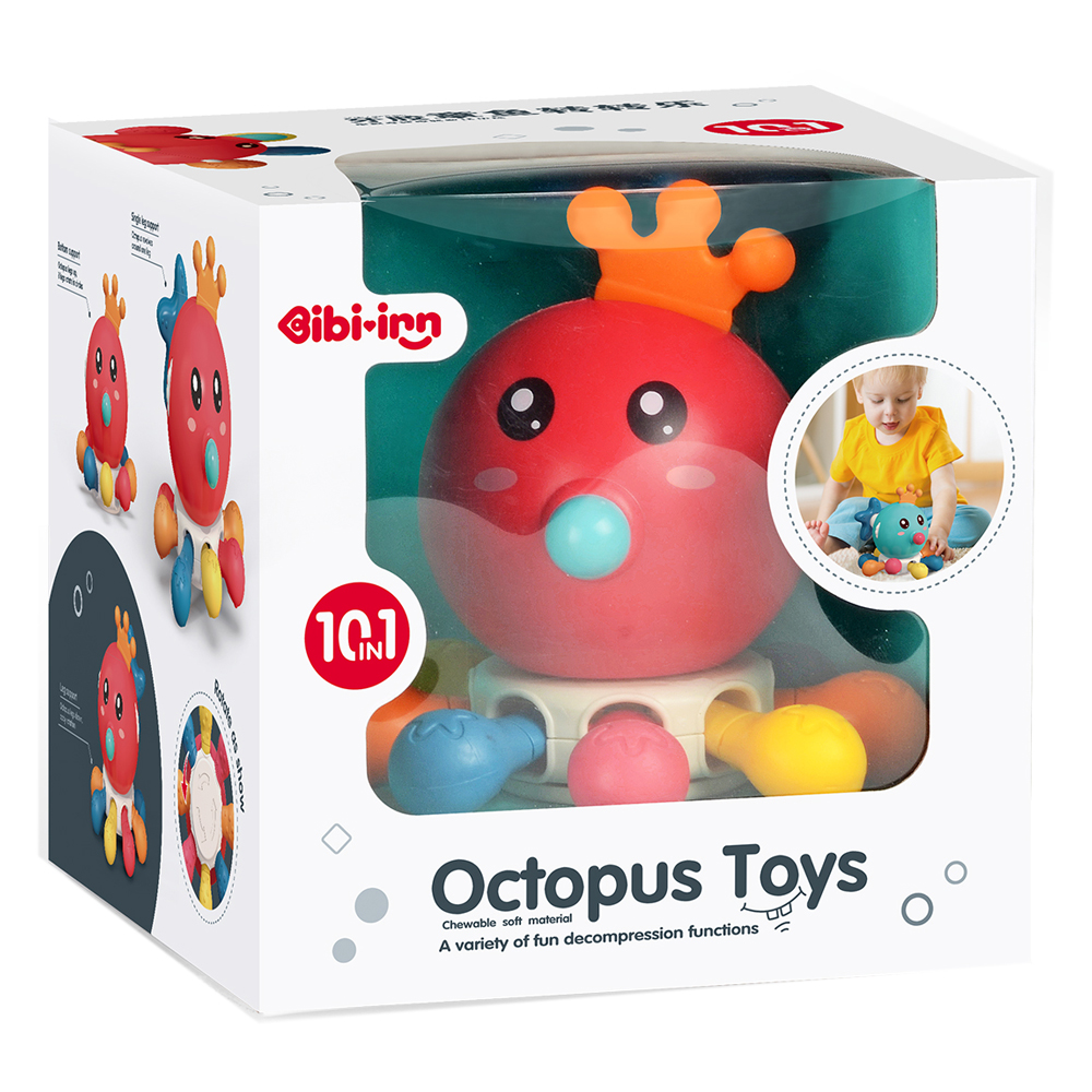 Sensoryczna ośmiornica idealna do stymulacji dłoni i paluszków elementy do obracania, przeciągania, chwytania, wydłużania (z tyłu ośmiornicy znajduje się rozgwiazda z wydłużającą rurką), miękka korona Wymiar zabawki: 18 x 12 x 12 cm