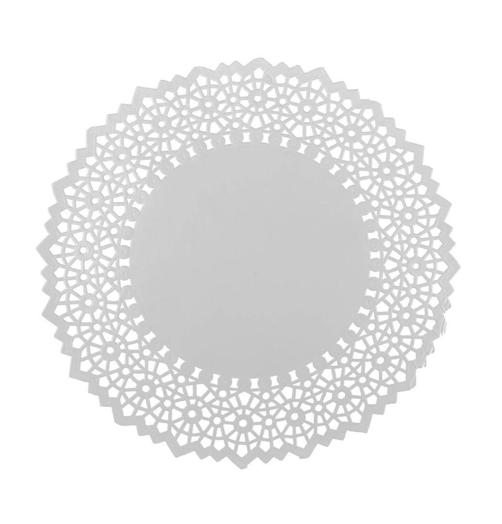 Serwetka papierowa z ażurowym brzegiem pod ciasto pakowana po 100 sztuk.