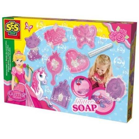 Kreuj pięknie pachnące mydełka z błyszczącym brokatem z zestawem marki SES. Komplet zawiera formy z motywami dla księżniczek: zamek, konia, koronę i lustro. Wykonanie jest łatwe i przyjemne! Musisz roztopić mydło w woreczku a następnie przelać je do formy. W końcowym etapie możesz dodać trochę brokatu dla jeszcze fajniejszego efektu. Modele mogą być wykorzystywane do udekorowania pokoju albo mogą posłużyć jako prezent dla kogoś kogo bardzo lubisz.