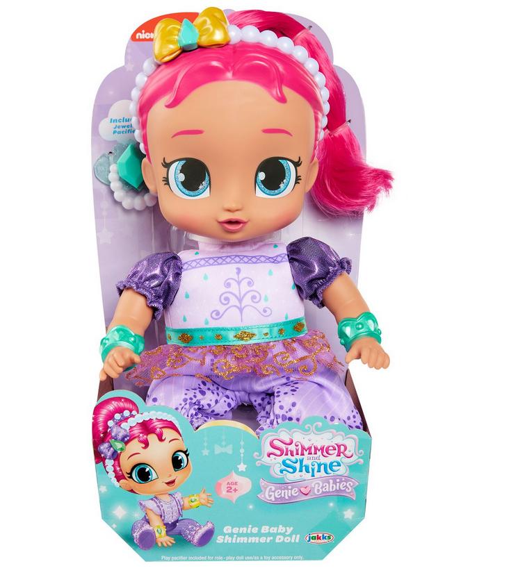 Urocze laleczki przedstawiające bohaterki dziecięcego serialu animowanego Shimmer & Shine! Shimmer i Shine to siostry bliźniaczki doskonale znane postacie z dziecięcej bajki. Główne bohaterki są dżinami i potrafią każdego dnia spełnić trzy życzenia. Każda dziewczynka z pewnością ucieszy się gdy do jej kolekcji zabawek dołączy wspaniała laleczka. Twoja pociecha będzie mogła się nią bawić, opiekować, a także wspólnie z przyjaciółkami odgrywać historyjki z animowanego serialu i wymyślać zupełnie nowe opowieści. Laleczka przedstawia jedną z bohaterek bajki ? Shimmer lub Shine. Zabawka ma 10.5 cala wysokości i została wykonana z wysokiej jakości materiału bezpiecznego dla najmłodszych. Lalka posiada uroczą twarz z dużymi oczkami, kolorowe włosy z aksamitnym kucykiem i ozdobną opaską oraz strój dżina pełny wielu charakterystycznych detali. Produkt dedykowany jest dla dzieci powyżej 2 roku życia.