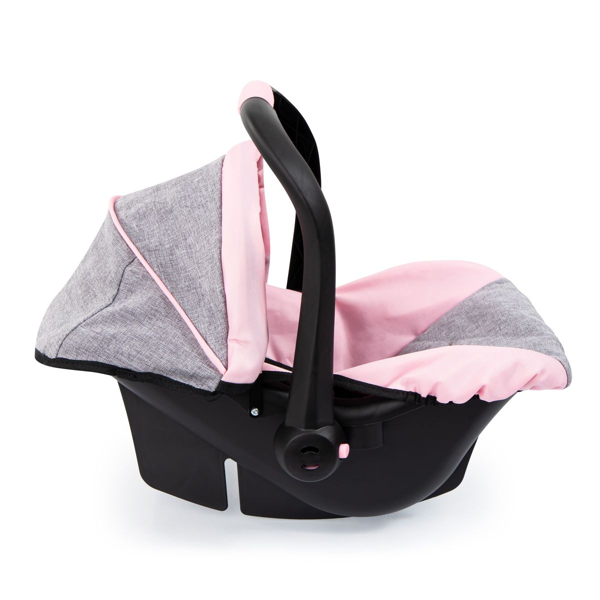 Dzięki temu nowoczesnemu fotelikowi samochodowemu w bardzo modnym kolorze pokochasz każdą jazdę samochodem! Piękny fotelik samochodowy nadaje się dla lalek do 46 cm. Dzięki miękkiej tkaninie oraz osłonie przeciwsłonecznej lalka lub pluszowa zabawka siedzą bardzo wygodnie i są chronione przed słońcem i wiatrem na twarzy. Dzięki zintegrowanemu pasowi bezpieczeństwa twoje "małe kochanie" dotrze bezpiecznie do celu, a w trakcie podróży może słodko śnić. Ergonomiczny uchwyt jest wygodny do przenoszenia, dzięki czemu lalka czy pluszowa zabawka mogą być zabierane wszędzie, gdzie chcesz. Wymiary (cm): 42 x 33 x 37.