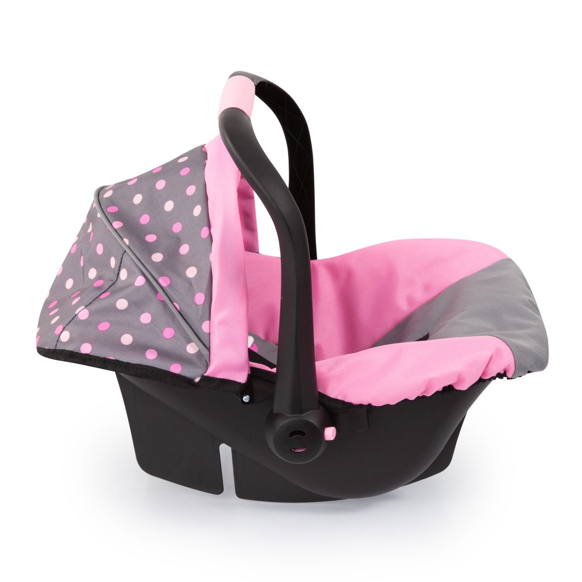 Dzięki temu nowoczesnemu fotelikowi samochodowemu w bardzo modnym kolorze pokochasz każda jazdę samochodem! Piękny fotelik samochodowy nadaje się dla lalek do 46 cm. Dzięki miękkiej tkaninie oraz osłonie przeciwsłonecznej lalka lub pluszowa zabawka siedzą bardzo wygodnie i sa chronione przed słońcem i wiatrem na twarzy. Dzięki zintegrowanemu pasowi bezpieczeństwa twoje "małe kochanie" dotrze bezpiecznie do celu a w trakcie podróży może słodko śnic. Jeśli położysz fotelik samochodowy dla lalek na podłodze i lekko go dotkniesz, to się zakołysze. Ergonomiczny uchwyt jest wygodny do przenoszenia, dzięki czemu lalka czy pluszowa zabawka mogą być zabierane wszędzie, gdzie chcesz. Dodatkowo fotelik samochodowy dla lalek można umieścić na wózkach dla lalek Neo.