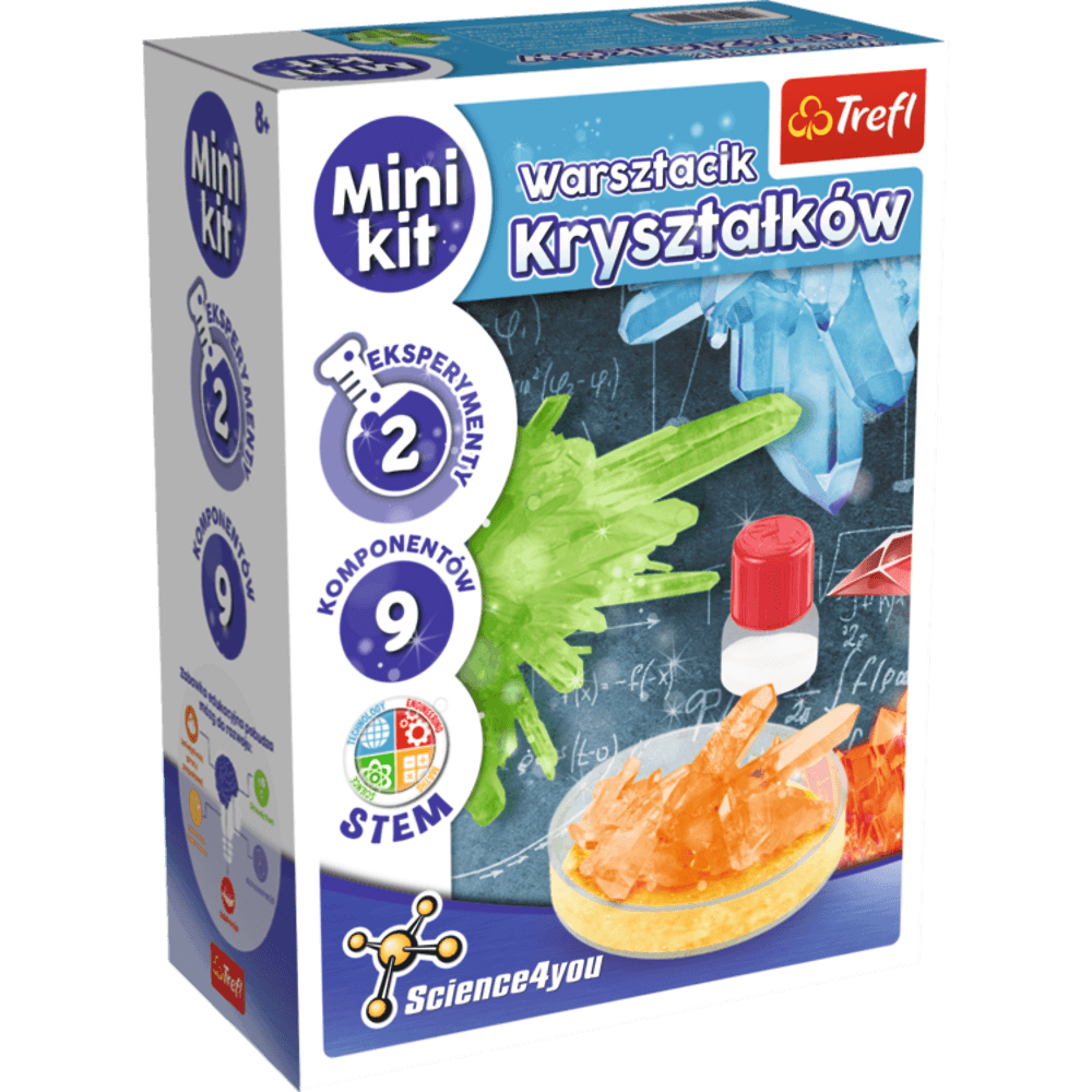 Zaczynając od Warsztaciku kryształków, poprzez pracownię, stwórz własną fabrykę nauki i zabawy! Za pomocą zestawu od Science4you stwórz błyszczące kryształki! Wykorzystaj ałun potasu, aby stworzyć kryształy i obserwuj ich powstawanie oraz wzrost. Użyj soli morskiej, aby stworzyć niepowtarzalny kwiat