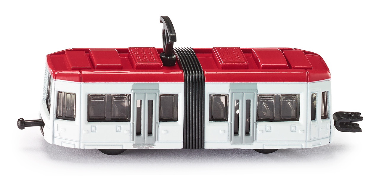 Tramwaj trzydrzwiowy odzwierciedla rozmiary pojazdu rzeczywistego przy zachowaniu wysokiej jakości szczegółów. Pojazd wykonany z metalowych i plastikowych elementów