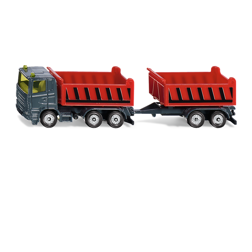 Gruz budowlany, ziemia, żwir lub piasek: ciężarówki z kolebą wywrotną wykonują różne prace na każdej budowie. Koleby można ładować do wysokości krawędzi za pomocą czerpaków i ładowarek kołowych SIKU. Dźwięk klaksonu i pojazdy wykonane z metalu i tworzywa sztucznego zaczynają powoli jechać. Po przybyciu na miejsce wyładunku można przechylić koleby i doczepić przyczepę, aby dostarczyć i wyładować materiały w drugim punkcie wyładunku. Oprócz tego można otwierać klapy koleb.