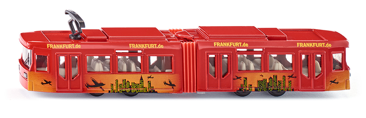 Tramwaj wykonany z metalowych i plastikowych elementów z kolorową grafiką. Pojazd jest odzwierciedleniem wyglądu rzeczywistej maszyny.*Model może różnić się kolorem i wzorem