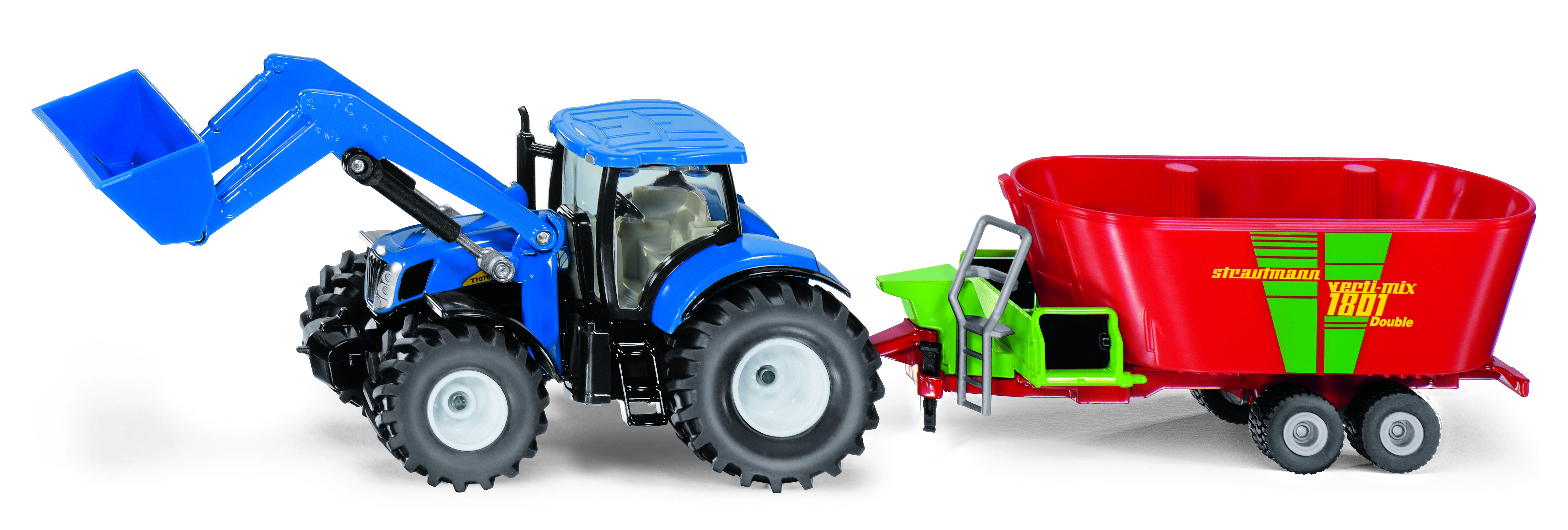 Siku Farmer - Traktor New Holland z przednią ładowarką i mikserem na paszę Strautmann