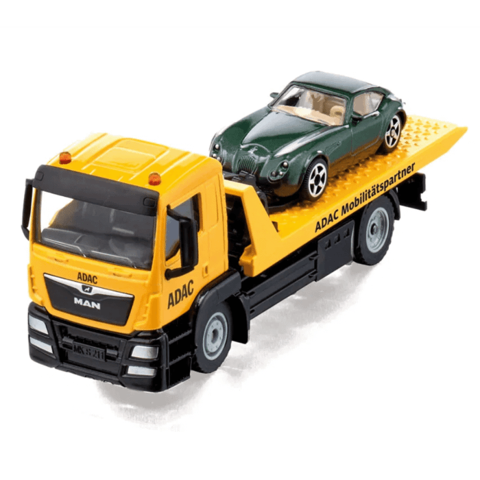 Funkcjonalna laweta w skali 1:55 do usuwania uszkodzonych pojazdów, w tym 1 samochodzik SIKU! Realistyczny proces holowania: wyciągana wciągarka linowa oraz odchylana i opuszczana platforma transportowa. Solidna i stabilna konstrukcja dzięki metalowemu korpusowi, łatwe prowadzenie dzięki gumowym oponom. Długotrwała zabawa, niezliczone możliwości kombinacji w świecie gier SIKU, m.in. można holować inne zabawki SIKU tej samej wielkości!