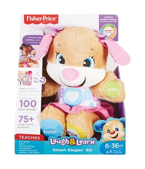 Siostrzyczka Szczeniaczka jest mięciutka, uwielbia się tulić i jest gotowa udowodnić, że nauka to świetna zabawa! Reaguje na dotyk Twojego dziecka radosnymi piosenkami i wypowiedziami, które uczą ponad 100 pierwszych słów, nazw części ciała, kolorów, kształtów i nie tylko! A ponieważ każde dziecko uczy się w swoim tempie, Siostrzyczka ma wbudowaną technologię Poziomy nauki, która umożliwia Ci wybranie poziomu, który jest najodpowiedniejszy na danym etapie rozwoju malucha.