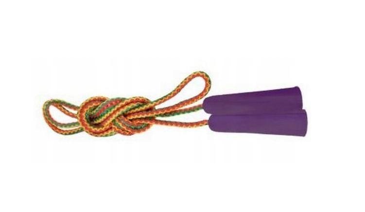 Skakanka wykonana jest ze sznurka i plastikowej rączki dzięki czemu jest twała i bezpieczna w użytku. Zestaw występuje w różnej konfiguracji kolorów.