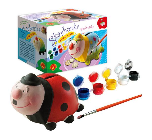Ceramiczna skarbonka to dobry początek do nauki oszczędzania. Ta skarbonka jest też doskonałą okazją do kreatywnej zabawy w stworzenie własnego , indywidualnego wzoru. Zestaw zawiera 6 kolorów niezmywalnych farbek i pędzelek. Dzięki temu każdy mozę pomalować swoją skarbonkę według własnej wizji i fantazji. W opakowaniu znajduje się również instrukcja, która zawiera kilkanaście przykładów na pomalowanie - co może być dobrą inspiracją dla każdego twórcy.
