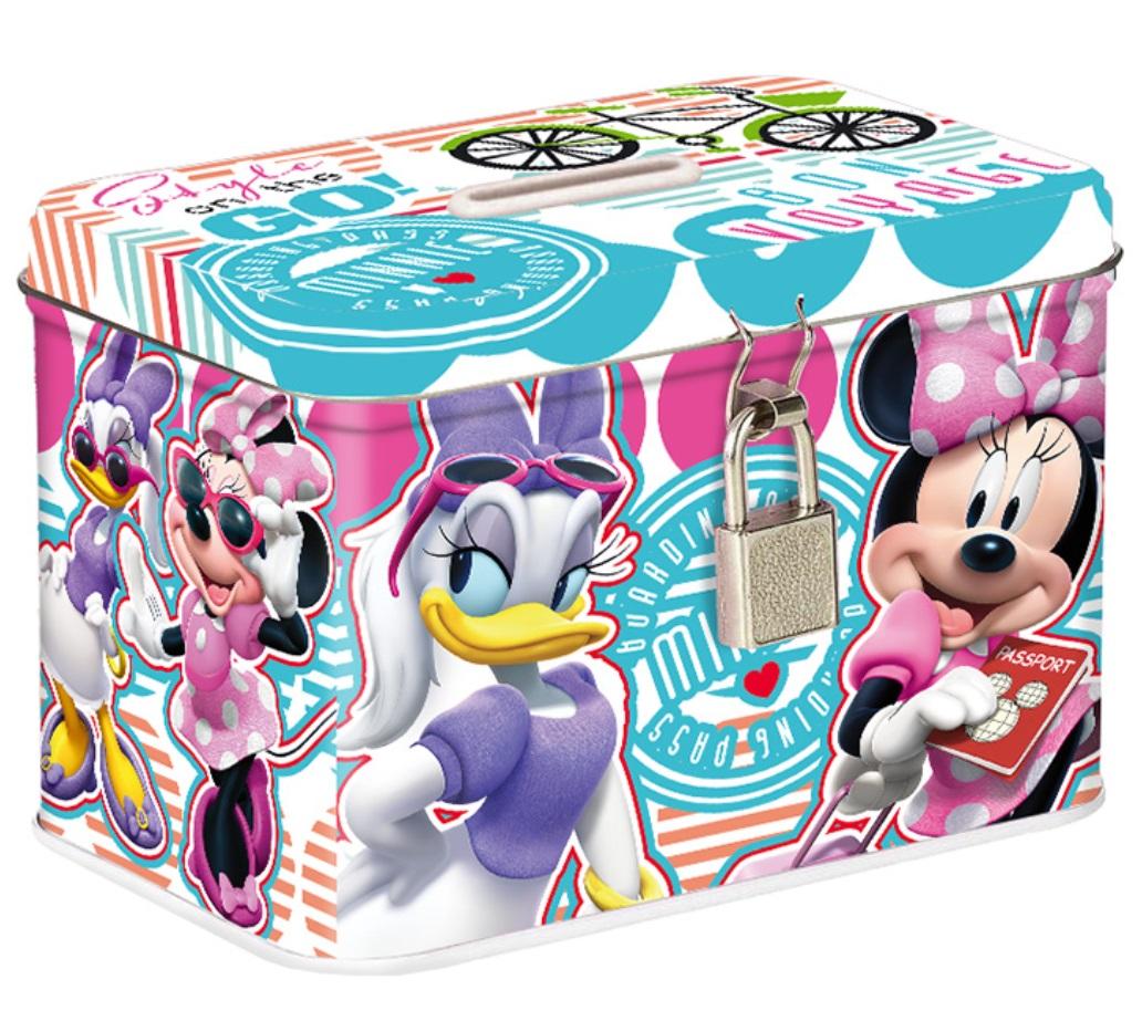 Prostokątna skarbonka z lakierowanego metalu z otwieranym wieczkiem, zamykana na kłódkę w zestawie z dwoma kluczykami. Idealny pomysł na prezent, który uczy oszczędności i sprawia, że pieniądze są bezpieczne. Skarbonka jest zdobiona nadrukiem ulubionych bohaterów.