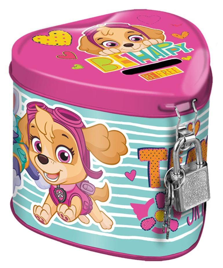 Skarbonka w kształcie serca z lakierowanego metalu z otwieranym wieczkiem, zamykana na kłódkę w zestawie z dwoma kluczykami. Idealny pomysł na prezent, który uczy oszczędności i sprawia, że pieniądze są bezpieczne. Skarbonka jest zdobiona nadrukiem ulubionych bohaterów.