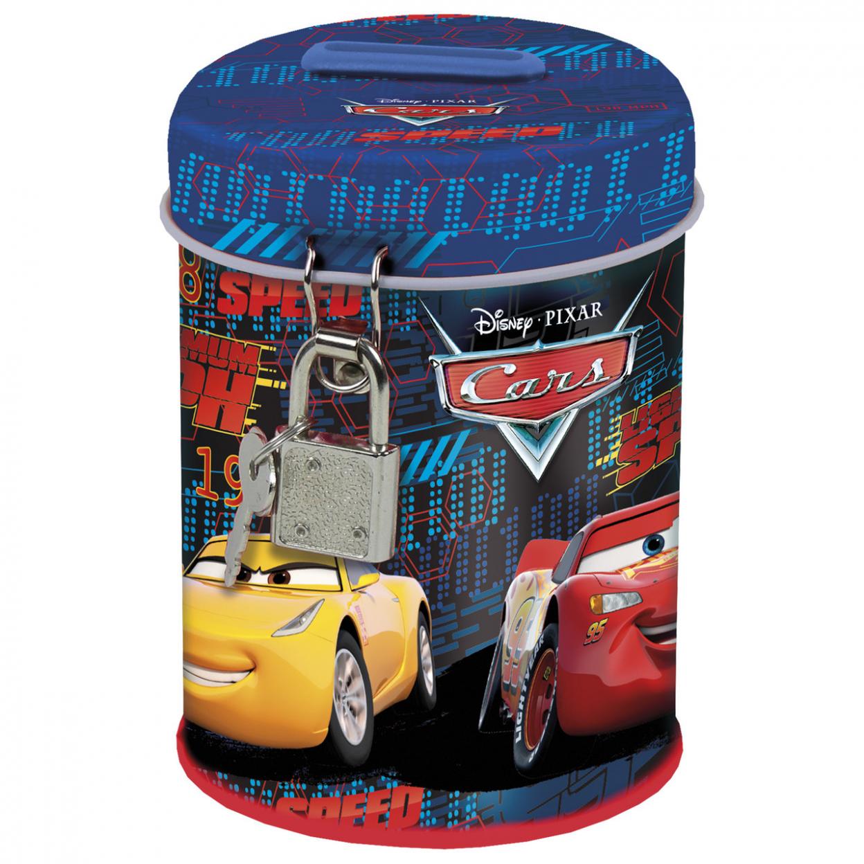 Skarbonka metalowa zamykana na kłódkę, z dołączonymi kluczykami.
