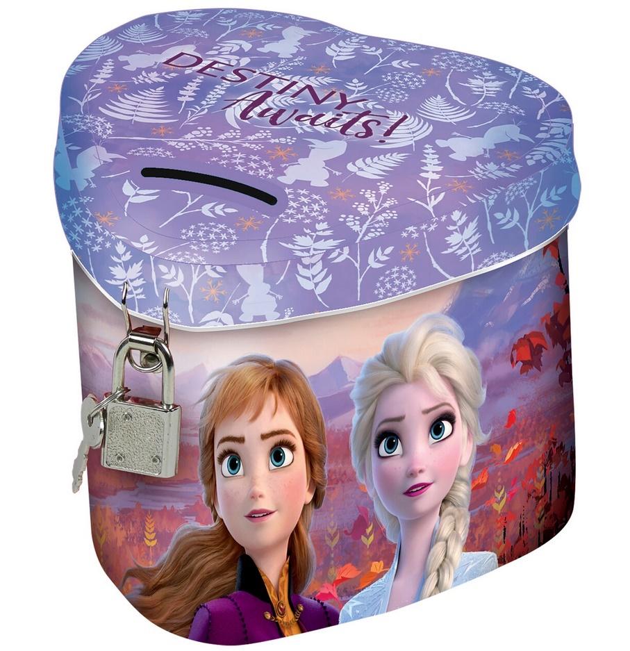 Metalowa skarbonka w kształcie serca, zamykana na kłódkę w zestawie dwa kluczyki.