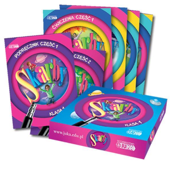 Skarby to nowoczesny pakiet, który zapewnia każdemu dziecku pracę na miarę jego możliwości.Dzięki Skarbom dzieci mogą doświadczać, eksperymentować i uczyć się w radosnej atmosferzeSkładowe pakietu Skarby klasa 1 to:Podręczniki część 1 i 2Ćwiczenia humanistyczne część 1, 2, 3, 4Podręcznik z ćwiczeniami do matematyki część 1 i 2Zeszyt do kaligrafiiZestaw do prac plastyczno - technicznychDoświadczenia Małego odkrywcyPłyta CD z doświadczeniami Płyta CD do zajęć komputerowych kl. 1Edukacyjne gry interaktywne kl. 1
