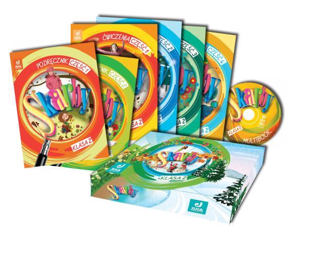 Nadrzędnym celem pakietu Skarby jest zmotywowanie ucznia i wywołanie impulsu chcę się uczyć. Nauczyciel wykorzystujący w swej pracy pakiet Skarby pełni rolę DROGOWSKAZU, cały pakiet jest MAPĄ, która prowadzi dzieci do odkrywania SKARBÓW otaczającego świata. Skarby to nowoczesny pakiet, który zapewnia każdemu dziecku pracę na miarę jego możliwości. Dzięki Skarbom, dzieci mogą doświadczać, eksperymentować i uczyć się w radosnej atmosferze odkrywania świata oraz własnych możliwości. Przez cały rok towarzyszą im bohaterowie pakietu- sympatyczna rodzina, przedstawiona uczniom na pierwszych kartkach podręcznika.Skarby to pakiet pozwalający na realizację idei indywidualnego podejścia do potrzeb i możliwości edukacyjnych każdego ucznia. Dzięki specjalnej konstrukcji, dziecko może odwoływać się do własnych doświadczeń, co inspiruje do zadawania pytań.Pakiet wyróżnia się przepiękną grafiką. Dominują tu przede wszystkim atrakcyjne zdjęcia, które potęgują zainteresowanie uczniów i angażują ich emocje. Pokazują miejsca często niedostępne dla bezpośredniej obserwacji i przenoszą w odległe geograficznie rejony świata. Na uwagę zasługują również różnorodne techniki plastyczne, które zdobią kartki podręczników. Uczą różnych sposobów obrazowania świata i motywują dziecko do wyrażania emocji poprzez różne techniki plastyczne. Ważną rolę odgrywają również ilustracje, które inspirują i konstruktywnie wpływają na wyobraźnię dziecka.Opakowanie jest kolorowym, tekturowym pudełkiem , które może służyć do przechowywania książek albo prac plastycznych dziecka. Składowe pakietu Skarby klasa 2 to: Podręczniki część 1 - 2 Matematyka część 1 - 4 Ćwiczenia część 1 - 4 Wyprawka Płyta do zajęć komputerowych Doświadczenia Małego odkrywcy Płyta z doświadczeniam Moja czytanka Moja matematyka część 1 i 2 Dzienniczek ucznia Kalendarz przyrodnika Multibook