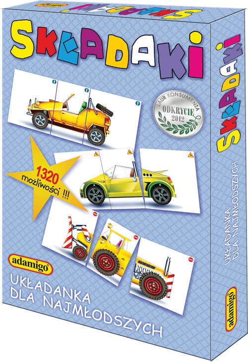 Czy są tu wśród nas młodzi miłośnicy czterech kółek?Zanim zamienisz marzenia o niezwykłych, mechanicznych rumakach na konkretny model, dajemy Ci możliwość pofantazjowania! Układanka dla najmłodszych „Składaki” daje Ci aż 1320 możliwości ułożenia najdziwniejszych pojazdów świata.