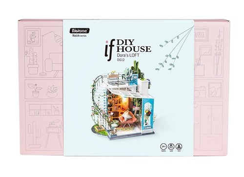 Zestaw umożliwiający złożenie miniaturowego pokoju na poddaszu z oświetleniem LED. Do budowy modelu wykorzystano między innymi drewno, papier, tkaniny, drut, tworzywo sztuczne oraz różne elementy dekoracyjne takie jak: kolorowe ozdoby, cekiny, koraliki, sztuczne kwiaty oraz wiele innych materiałów. Dodatkowego uroku nadaje całości oświetlenie LED, dzięki któremu pokój na poddaszu może pełnić rolę nastrojowej dekoracji lub lampki nocnej. Opakowanie oprócz czytelnej, obrazkowej instrukcji zawiera także baterie, pędzelek, farby akrylowe, przezroczysty, bezwonny klej oraz pęsetę ułatwiającą montaż małych elementów. Budowa tego modelu pomoże rozwinąć zdolności manualne i przyniesie dużo satysfakcji.