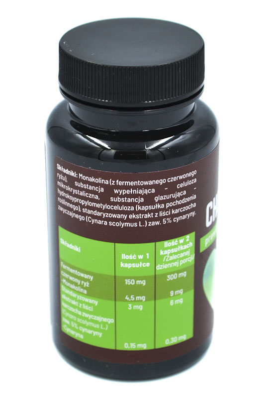 fermentowany czerwony ryż, substancja glazurująca (hydroksypropylometyloceluloza) - kapsułka pochodzenia roślinnego, substancja wypełniająca (celuloza mikrokrystaliczna), standaryzowany ekstrakt z liści karczocha zwyczajnego (Cynara scolymus L.).